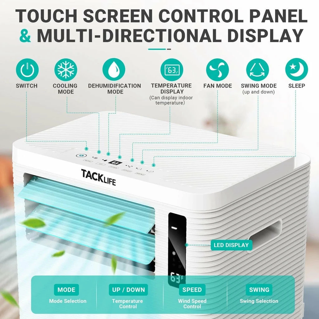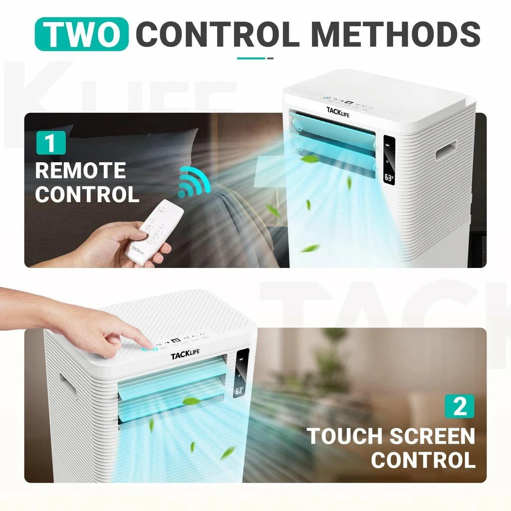Keep cool in warm weather with a TACKLIFE Portable Air Conditioner! This conditioner has 3 functions- cooling, fan, and dehumidifier. It can cool to as low as 61°F and has 3 fan speeds. The dehumidifying feature has self evaporation to take care of low volume moisture, and also has 2 drain ports for excess moisture. Room placement is simple and easy with rotating wheels on the bottom of the air conditioner. The unit includes a removable/reusable air filter and a remote control.
