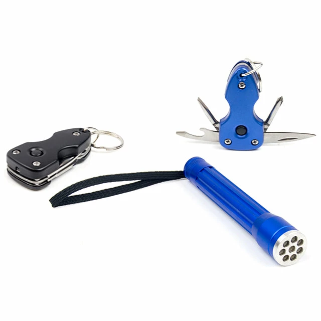 Donโt get caught without a BeamMaster 3 PC Multi-Function Keychain and Flashlight!ย The multi-tool keychain with LED light includes key ring, Phillips screwdriver, small knife, led light, bottle opener, slotted screwdriver (small) and slotted screwdriver (medium).ย The flashlight is 8 LED and comes with 2-AA batteries.ย Great for at home or on the go!