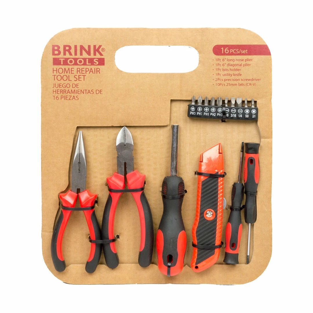 This 16pc set from Brink Tools will keep you at the ready when duty calls! From changing batteries in clocks and toys to cutting wires and making minor repairs, this set has everything you need for small jobs.