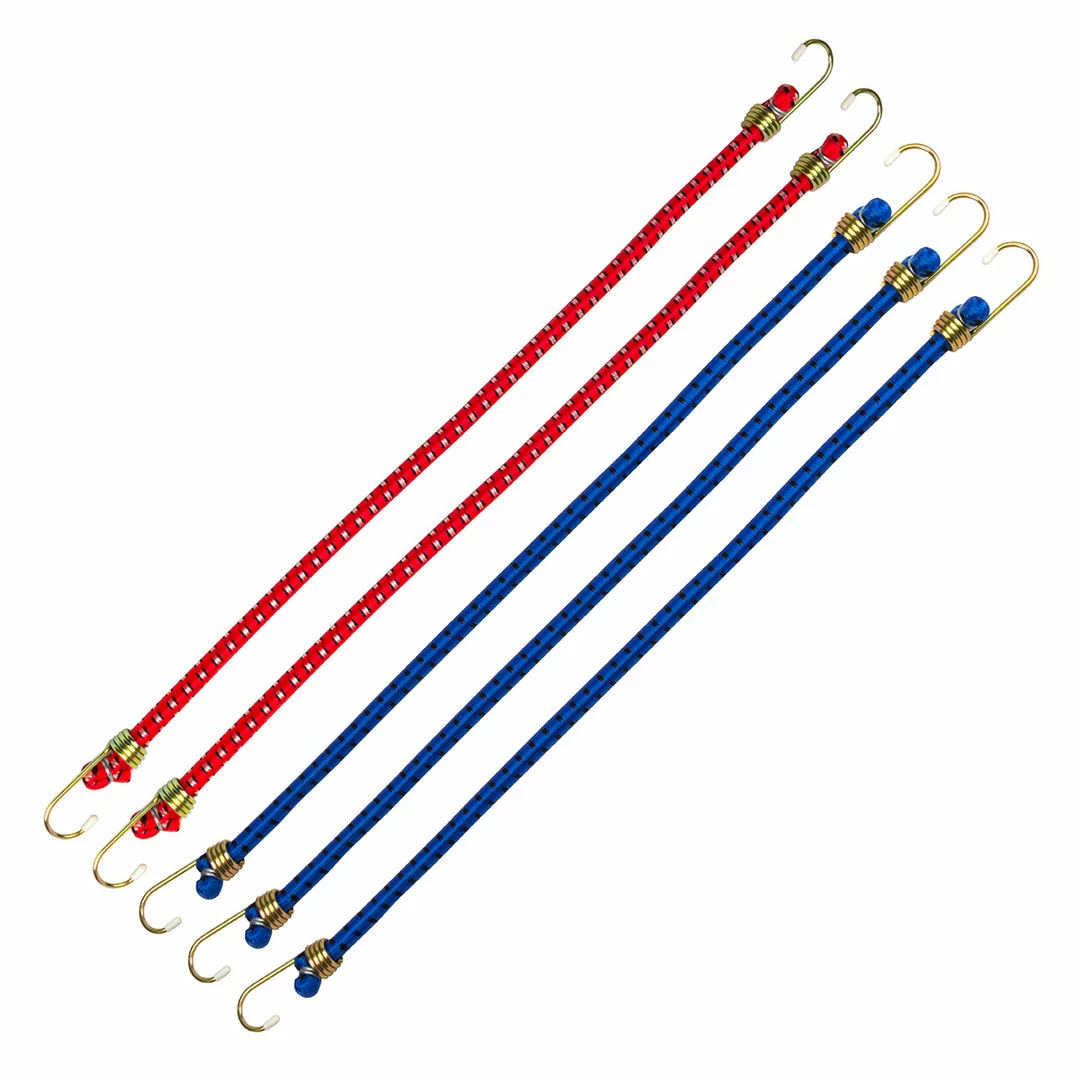 - 5 Piece 24″ Bungee with Steel Hooks (Blue & Red)