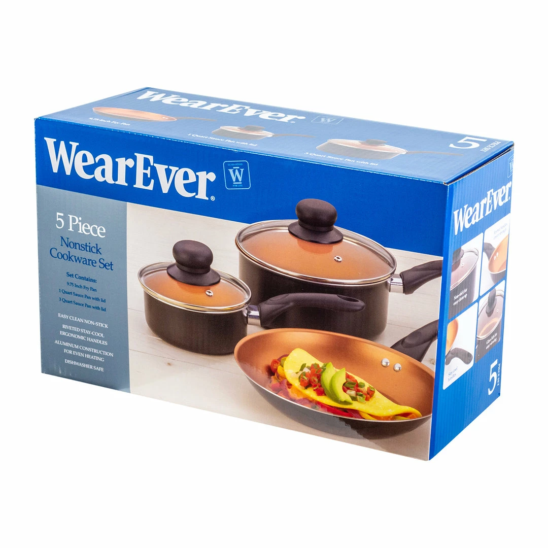 This Stylish 5 Piece Non-Stick Cookware Set from Wearever is the